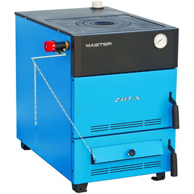 Котлы «Master» можно отапливать самым разным топливом – антрацитом, бурым углем, дровами, пеллетами, сжиженным и природным газом (опционально). Время работы при одной загрузке – до 12 часов. Мощность моделей – от 12 до 32 кВт. Температуру воды можно отслеживать при помощи термометра на передней панели.